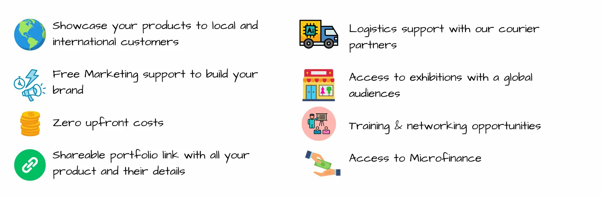We genuinely love promoting the amazing work our artisans do and we do it completely free of charge using various marketing channels including social media.